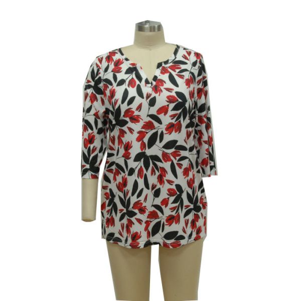 Ladies Casual , 3/4 Sleeves V-neckline Shirt , Allover Printed , ITY Fabric Quality