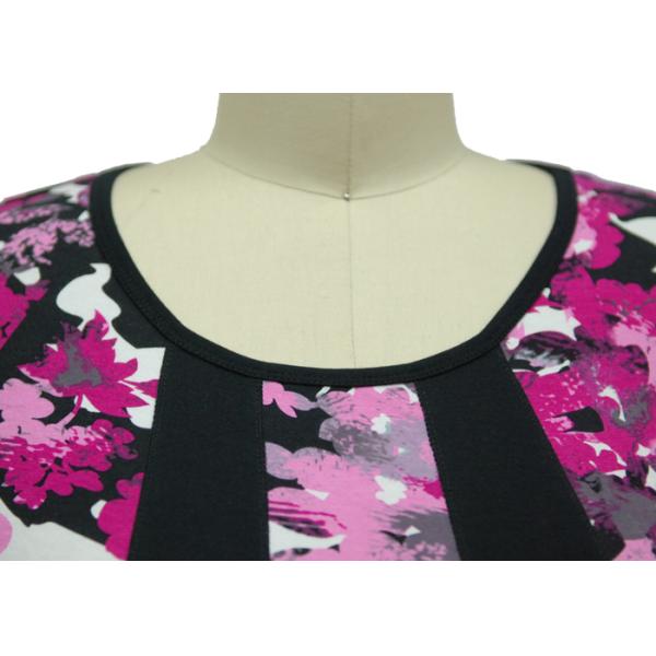 Ladies Long Sleeves Shirt Round Neckline Allover Floral Printing With Black Patch Insert At Front